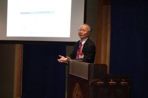 続けて、講演(その1)に進み、シスメックス株式会社 知的財産本部 理事 本部長の井上様から「シスメックスの知財活動~当たり前のことを当たり前に」を、ご講演いただきました。シスメックスは検体検査(機器+試薬+サービス・サポート)を事業領域として、190か国以上でビジネスを展開されています。海外売上比率は85%以上を占めることや、研究開発は、オープンイノベーションを軸に進められているなどビジネスも特徴的であるため、知財活動も多くの一般企業とは異なる点も多いのではないかと期待されます。努力の天才「イチロー」の「来た球を打ち返す」という当たり前の期待に応えられるように厳しい練習を続けるプロとしての生き様を念頭におかれているそうです。2000年頃、当時のシスメックスの知財活動における課題を浮き彫りにしながら、改革を進めてこられて、現在にいたった状況を詳しくご紹介されました。「研究開発と事業展開の自由度を確保し経営に資する」という理念のもとで、(1)グローバルな知財活動、(2)信頼される知財活動、(3)研究者にやさしい知財活動を実現されたお話はとても勉強になりました。