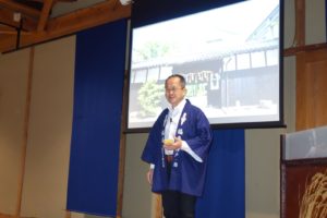 例会は、神戸酒心館の豊明蔵にある趣豊かな酒心館ホールでおこなわれました。代表幹事報告では、会員の入退会状況、例会スケジュールや次回の開催要領と講演予定などの説明が行われました。また、新しくなったATISのWEBページ、および、知的財産活用研修の紹介もありました。