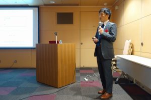 講演会は、講師として、特許庁総務部企画調査課長 今村亘氏をお招きし、「特許行政の最新動向 ~ 競争優位の激変と知財の役割 ~」と題し、中国を主とした最近の国際的な特許動向をはじめ、標準必須特許、各国の知財訴訟動向、特許・意匠の見直し、特許庁業務におけるデザイン経営およびAIの導入など最新動向について、ご紹介頂きました。
