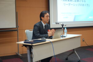 後半の講演会では「知財業務に必要となるリーダーシップのあり方」と言うテーマで、株式会社日本能率協会コンサルティング テクニカルアドバイザー シニア・コンサルタント 木村 壽男 様にご講演いただきました。
