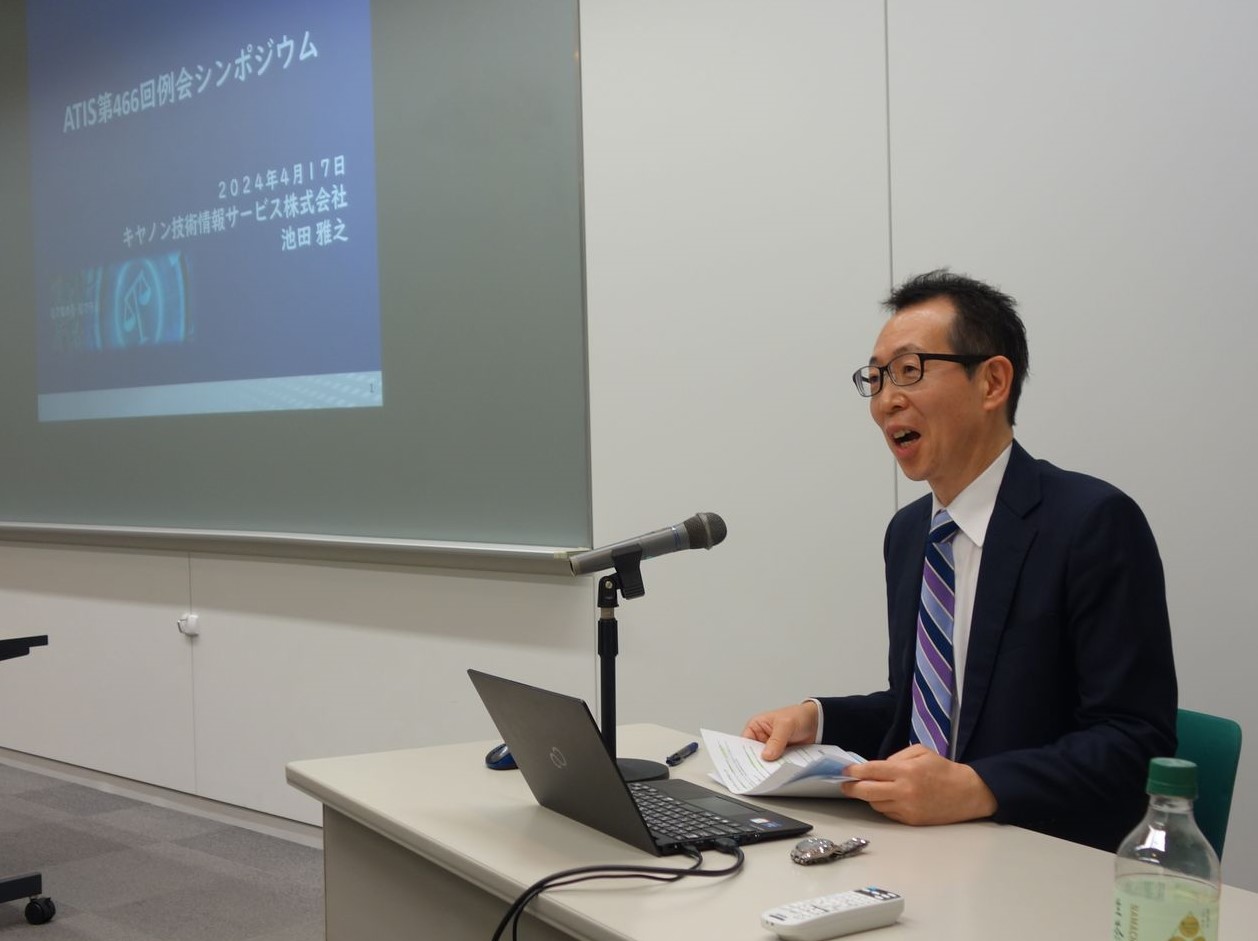 2024年4月17日(水)、株式会社IHI(以下「IHI」という)の本社にて第466回ATIS例会を開催しました。リアルのみの会議で46名が参加しました。当日行われた議事の中から、i-muse施設見学と、キヤノン技術情報サービス株式会社によるシンポジウム講演について紹介します。